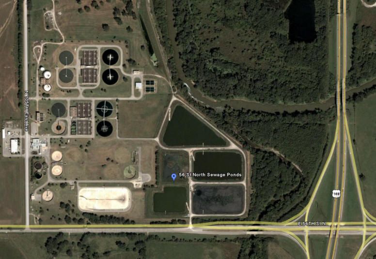 The best route to reach the sewage plant is from US 169 exiting at 56 St. and driving west approximately 0.2 mile. Some of the ponds can be seen from the 56 St. through the chain link fence, but the entrance is on the west side of the facility, off of 105th E. Ave. During working hours the gate is usually open and one can enter the enclosure. Be sure ask one of the employees, in the office or on the grounds, permission to enter the facility.